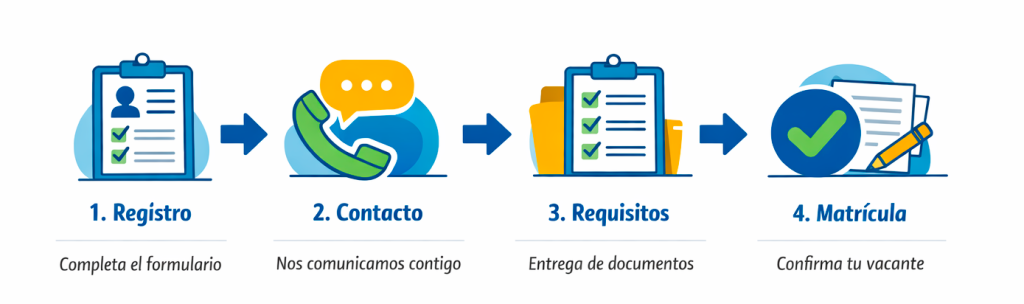 En Chaperito Schools acompañamos a las familias en cada etapa del proceso de admisión. Nuestro objetivo es brindar una atención cercana, clara y ágil, para que puedan asegurar la vacante de su hijo(a) con total confianza y tranquilidad. A continuación, te explicamos los pasos a seguir.